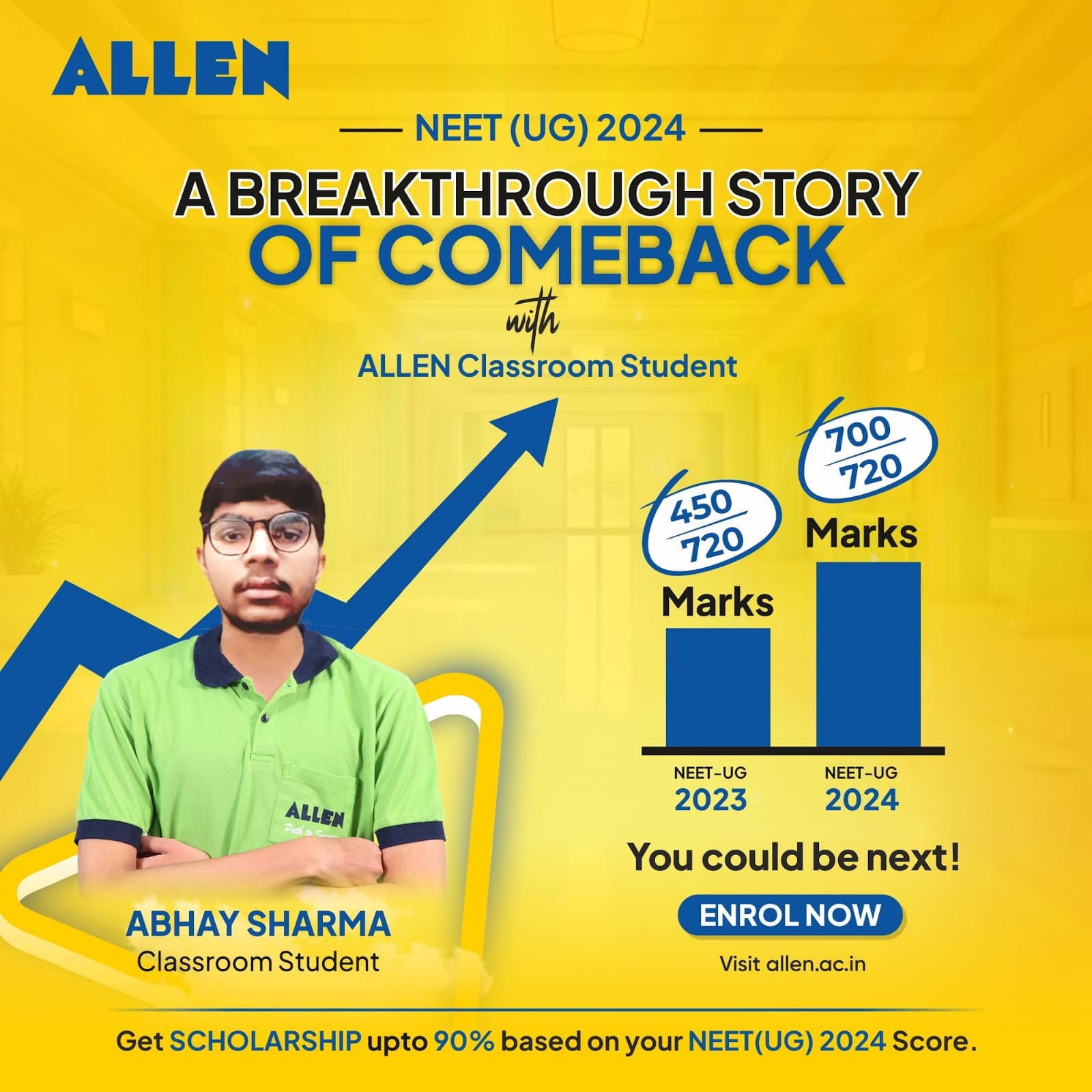Abhay Improved his NEET UG 2023 Score of 450 Marks to Qualifying 700 Marks in NEET 2024 with the Guidance of ALLEN