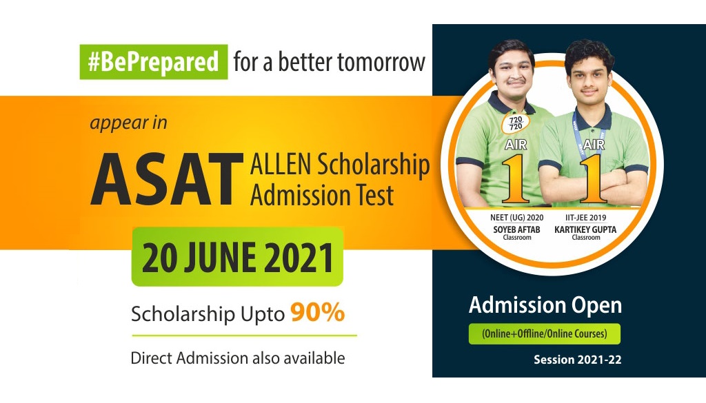 The Pre-Nurture and Career Foundation (PNCF) batches for the students of classes 6 to 10 are starting from 17th and 23rd June. For admission in these batches, ALLEN Scholarship Admission Test (ASAT) will be conducted on 20th and 27th June 2021. The students can get up to 90% scholarship in admission fees based on their performance on the test.