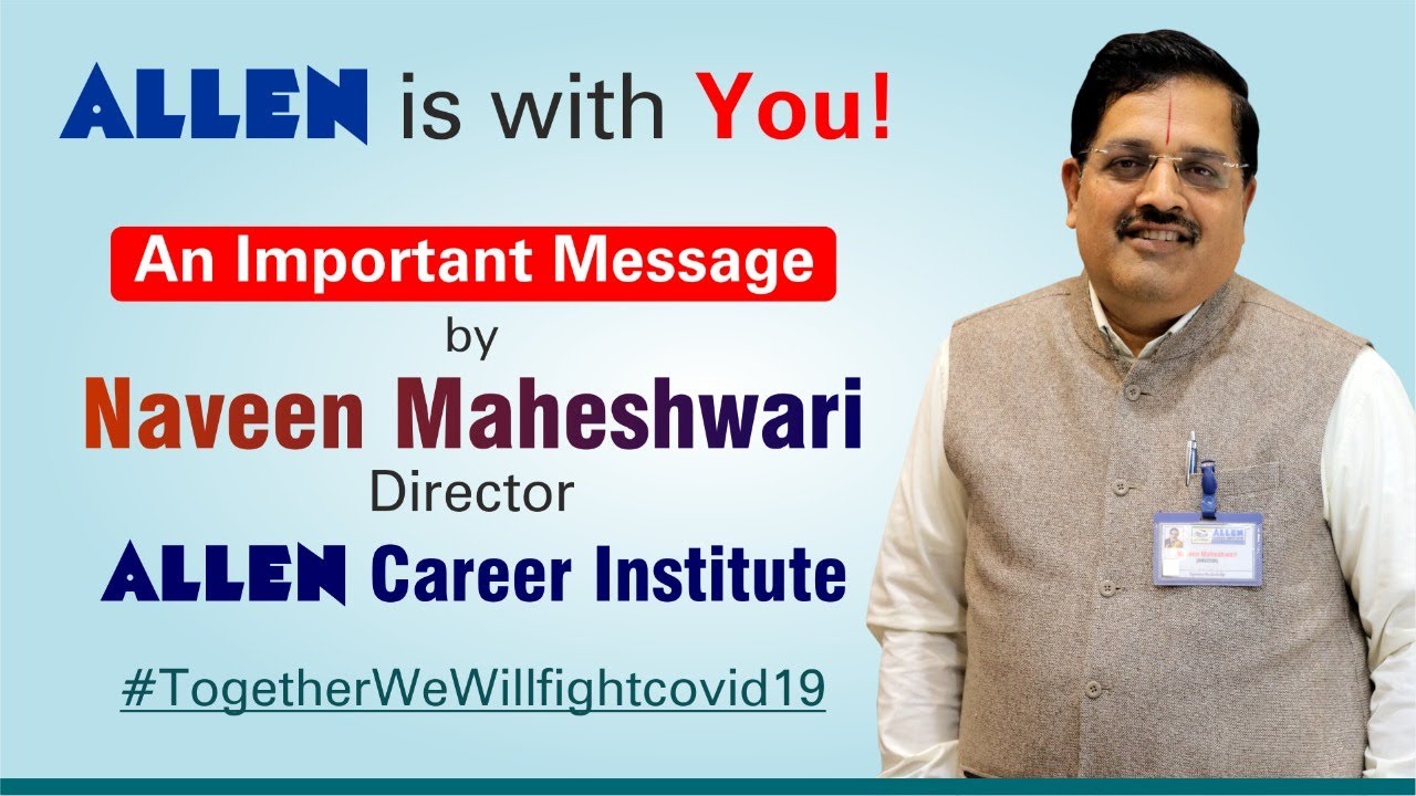 The threat of Coronavirus has led to a lockdown in the entire nation. In such tough times, ALLEN Career Institute has come forward is extending help to the people of Kota City in every possible way. Sh Naveen Maheshwari gave an important message to the students and parents who are facing difficult times.