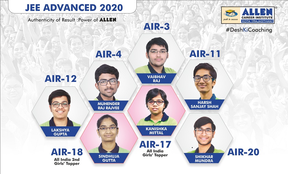 Kota. Students of ALLEN Career Institute have once again proved their excellence with the JEE-Advanced 2020 result. 2 students of the institution have made it to the top 10 and 7 students have made it to the top 20. All of these students are from ALLEN’s Classroom Course.