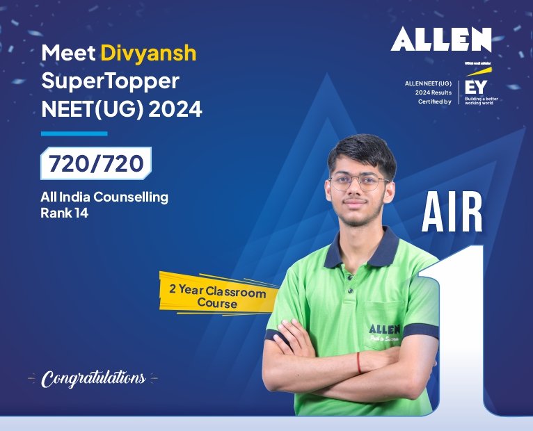This Success in Exceptional – Divyansh from ALLEN Achieves AIR-1 in NEET UG 2024
