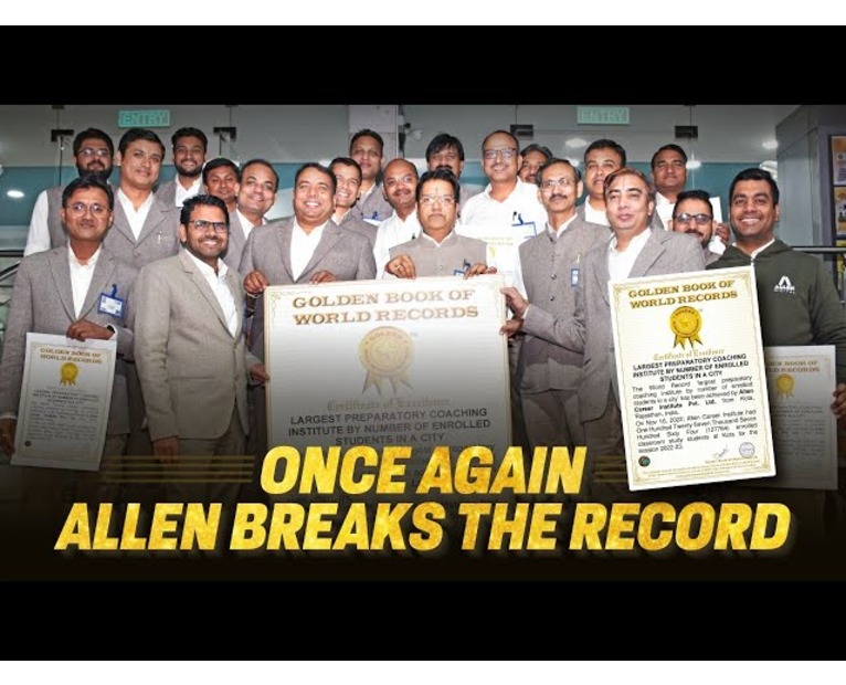 ALLEN Career Institute Pvt Ltd has once again created history. The Golden Book of World Records has certified the world record of ALLEN Career Institute in Career City Kota. The record for the highest number of students in a single institution in a city has been recorded in the Golden Book of World Records.