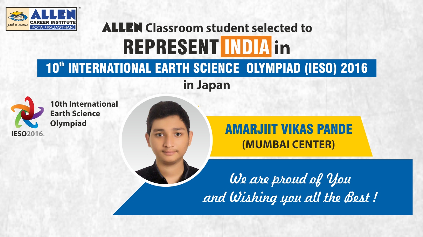 The students of ALLEN Career Institute continue to prove their excellence in the National & International Olympiads year after year. Amarjit Vikas Pande, the student of ALLEN Career Institute makes ALLEN proud by being selected to represent India internationally. Amarjit, who is a classroom program student at ALLEN from the past 1 year, has been selected in the team of 4 students to compete in the 3rd and the final round of International Earth Science Olympiad this year.
