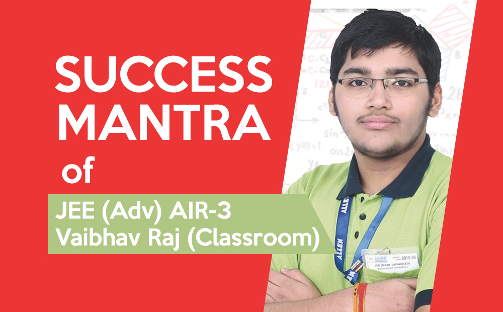 ALLEN Classroom student, Vaibhav Raj, achieved phenomenal success by securing AIR 3 in the JEE Advanced 2020, the result of which got declared on October 5, 2020.