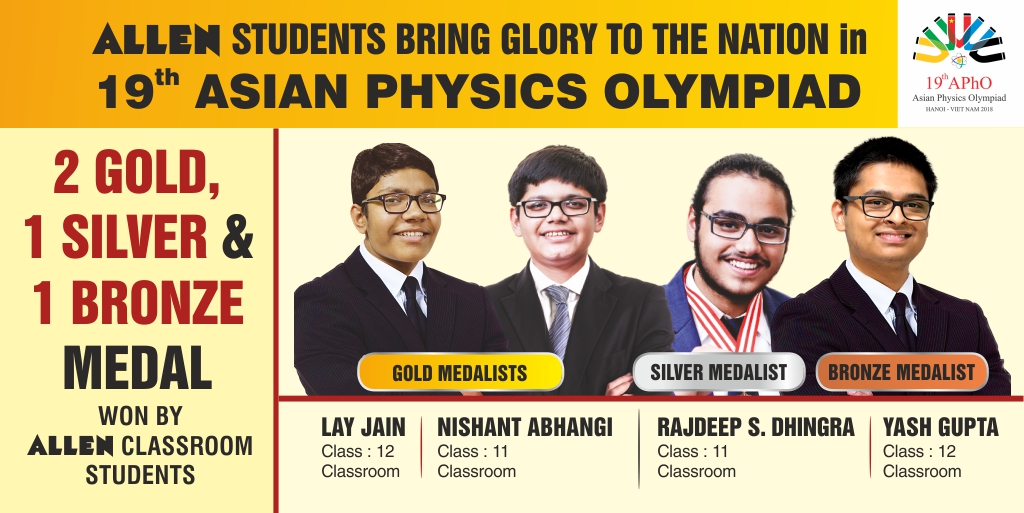 Director Sh. Brajesh Maheshwari said “India received five medals in Asian Physics Olympiad held in Hanoi, Vietnam from May 5 to 13. Out of which 4 medals are won by students of Allen Career Institute. In this Olympiad, the country got five medals which include two gold, one silver and two bronze. Both Gold Medals are received by ALLEN students”.