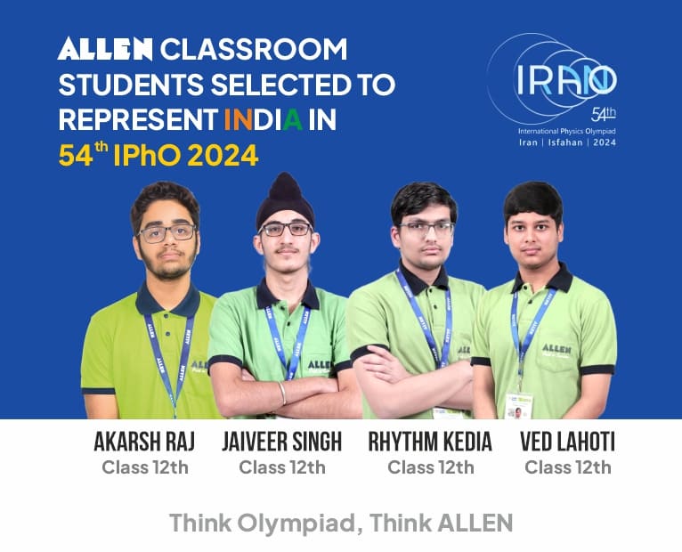 The selected students include Akarshraj Sahay, Jaiveer Singh, Rhythm Kedia and Ved Lahoti. These are all classroom students of ALLEN Career Institute. The 54th International Physics Olympiad (IPhO) is going to be held in Iran from 21 to 29 July.