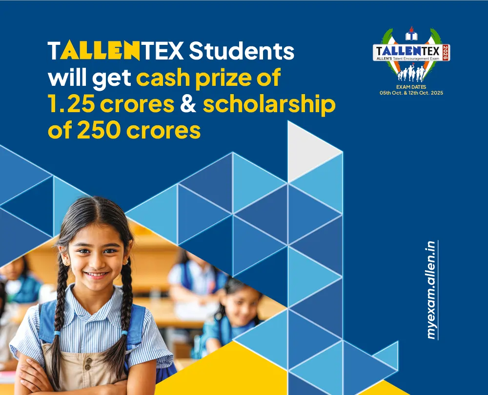 By appearing in this exam, students can accomplish their dreams by getting concessions in coaching fees. Since its inception, 18.25 lakh students have participated in ALLEN TALLENTEX. Students from class 5 to 10 can participate in this exam. The exam will be held on 5th and 12th October. Students applying by 30th June will get a special 50% discount in registration fees.