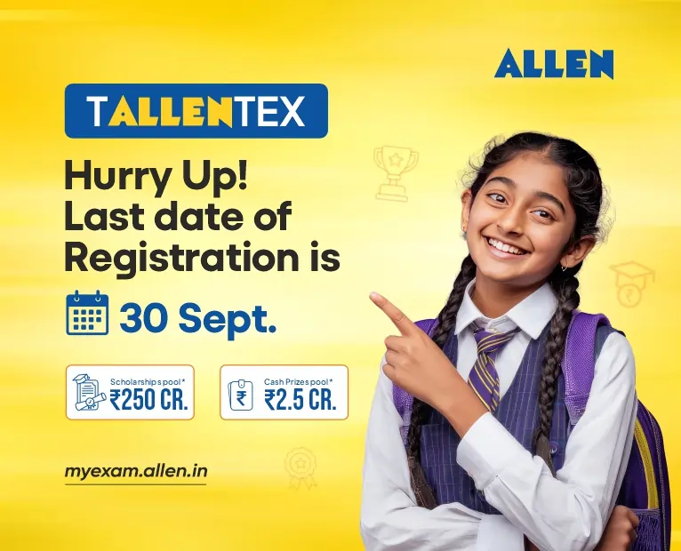 Students across the country are excited about ALLEN TALLENTEX 2025. This is one of the biggest talent promotion examinations in the country, by participating in which students can win up to 90 percent scholarship on ALLEN fees and attractive cash prizes. This year the exam will be held on 5 and 12 October. For this, the last date of registration has been fixed as 30 September.