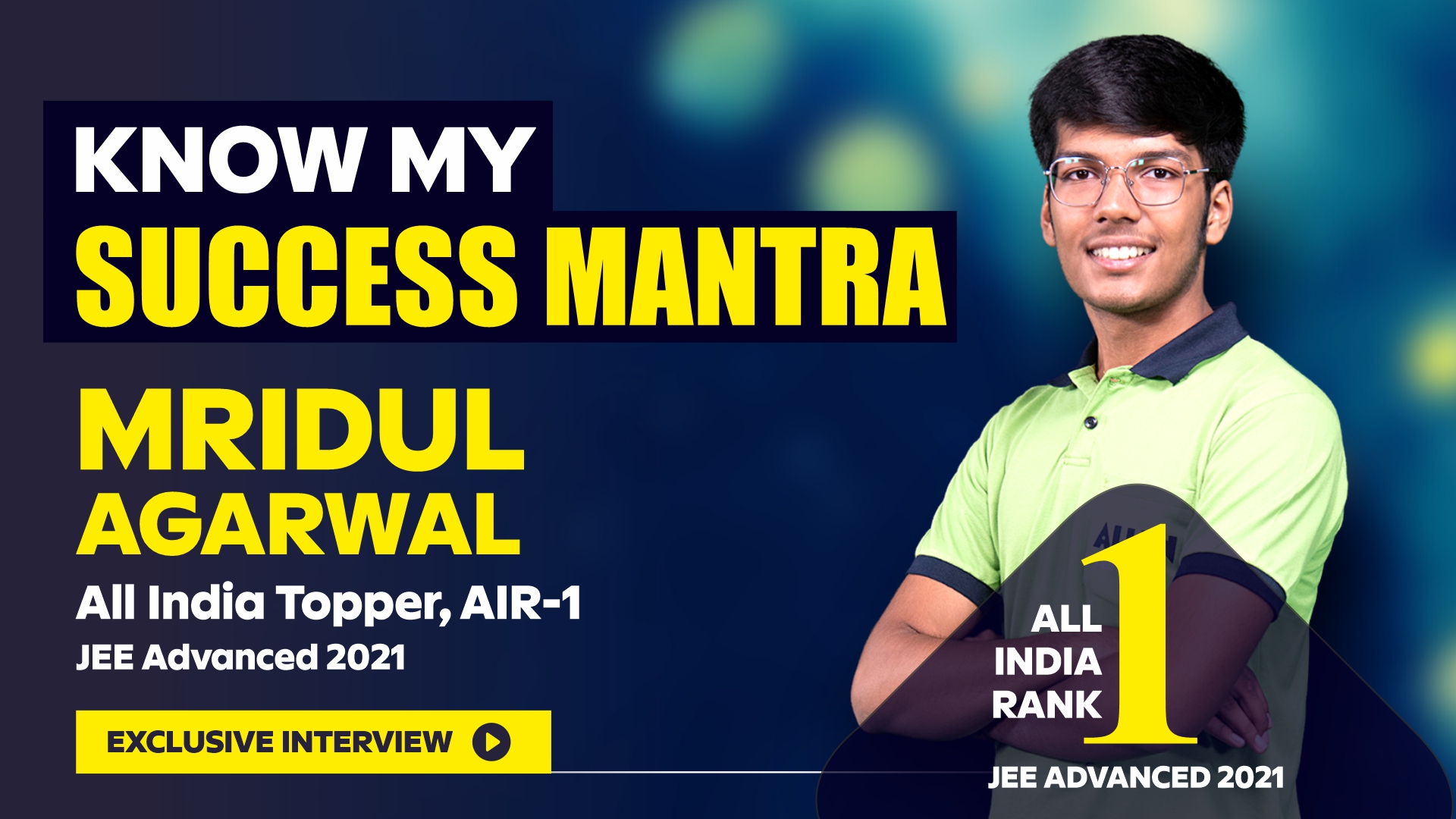 ALLENite Mridul Agarwal has scored the highest ever percentage in the IIT-JEE entrance exam. Out of lakhs of students who appeared for one of the most prestigious exams in India, Mridul has topped the chart by scoring 348 out of 360 marks and 96.66 percent in JEE Advanced 2021.