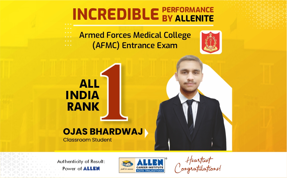 The Armed Forces Medical College Pune has declared the final examination result. According to the cut-off, ALLEN Classroom Student Ojas Bhardwaj has secured rank-1.