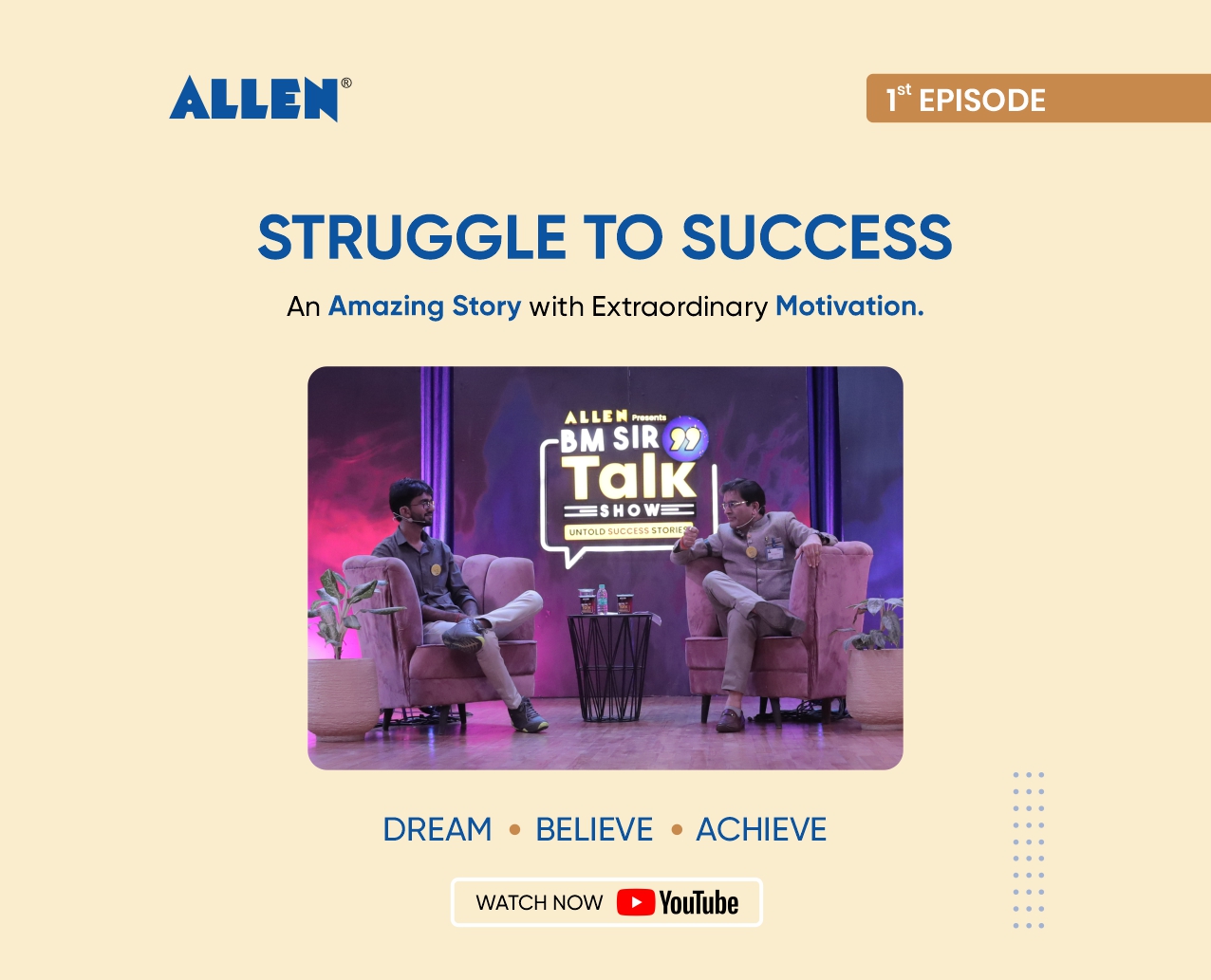 Nothing can stop from achieving your goal if you have strong determination. This was proved true by Hemendra Patidar’s life tale of struggle and courage who defied all odds to emerge winner in AIPMT and become a doctor. In a candid conversation with Director and Co-Founder, Allen Career Institute Private Limited, Dr Brajesh Maheshwari, Dr Hemendra Patidar narrated his journey from a village boy to a medico at BM Sir’s Talk Show which was aired today.
