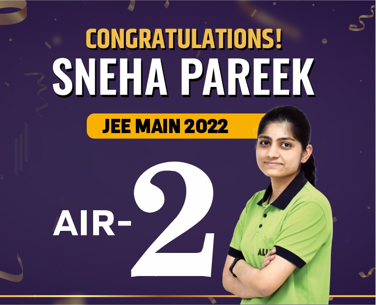 In JEE Main 2022 Session 2 (July attempt), Sneha Pareek of Assam has secured 2 AIR by securing 300 out of 300 marks. Sneha, a classroom student of Allen from the last two years, has also been the state topper of Assam in the JEE Main 2022 Session 1 (June attempt) by securing a perfect score of 300 out of 300. Sneha passed class 10th with 95% marks. Sneha is also a KVPY Scholar.