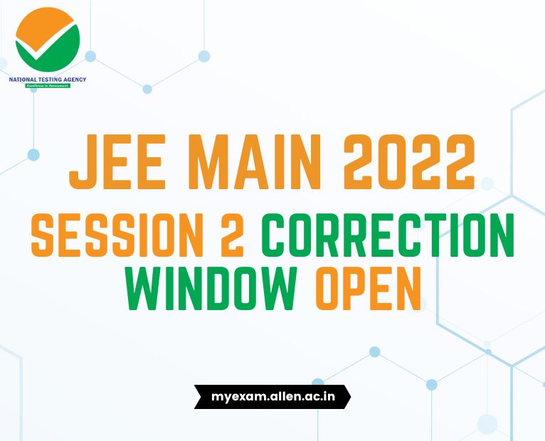 The National Testing Agency (NTA) 2022 has opened the Correction Window for the JEE Main 2022 Session 2 aspirants for correction in the particulars of the Online application form of JEE Main 2022 Session 2.