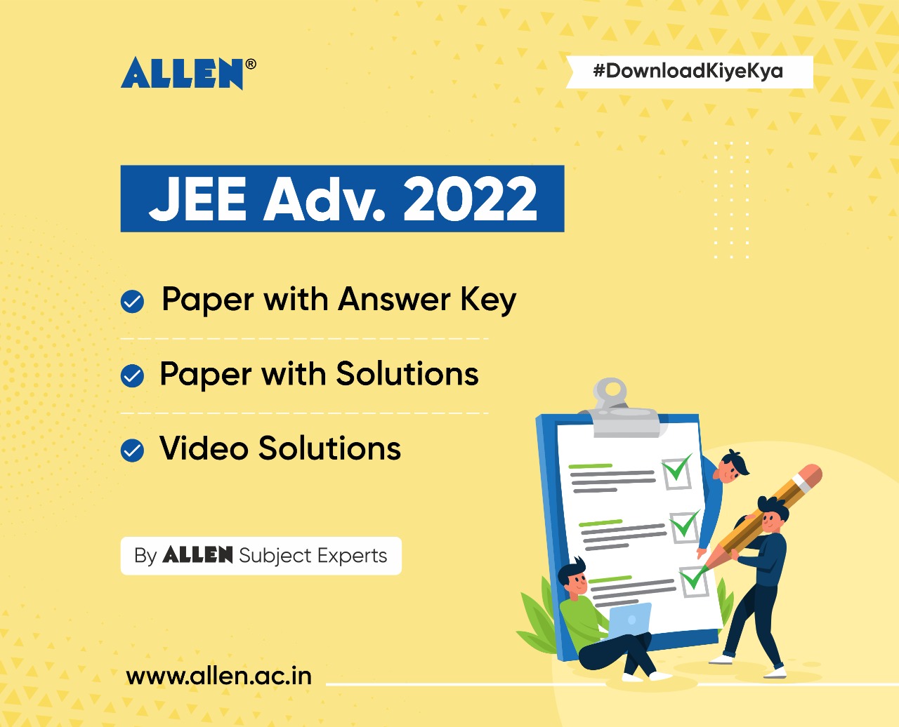 Students can download the answer keys, paper with solution, and video solutions from the Allen website