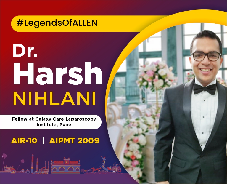 Harsh Nihlani got AIR- 10 (AIPMT) 2009 and is now working as a fellow at the Galaxy Care Laparoscopy Institute, Pune.