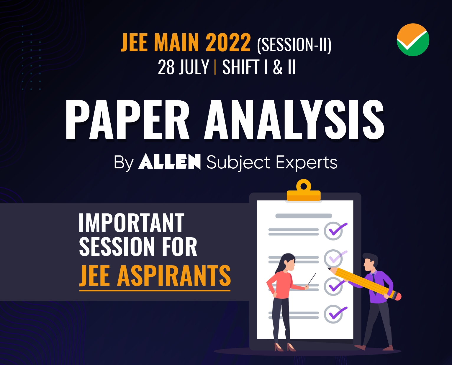 🔴 JEE Main 2022 Session-) ➡️ 28 July (Shift 1+2) Paper Analysis & Difficulty Level by ALLEN Experts