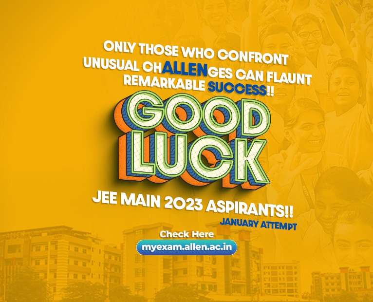 Allen Career Institute offers best wishes to all the aspirants of the JEE Main 2023 Session 1. After the JEE Main 2023 examination yearlong preparation, the time has come for the big centre stage where students will have to give their best shot. Top performance in the JEE Main 2023 Session 1 can guarantee them the ticket to qualify for the JEE Advanced 2023, and the key to securing All India Ranks for seeking admissions in the Government-funded higher technical education institutions including NITs, IIITs, and others. So fasten your seat belts and put your foot on the accelerator for your first step towards success in higher education. May God Luck be in your favour and your preparation bring fantastic outcome!