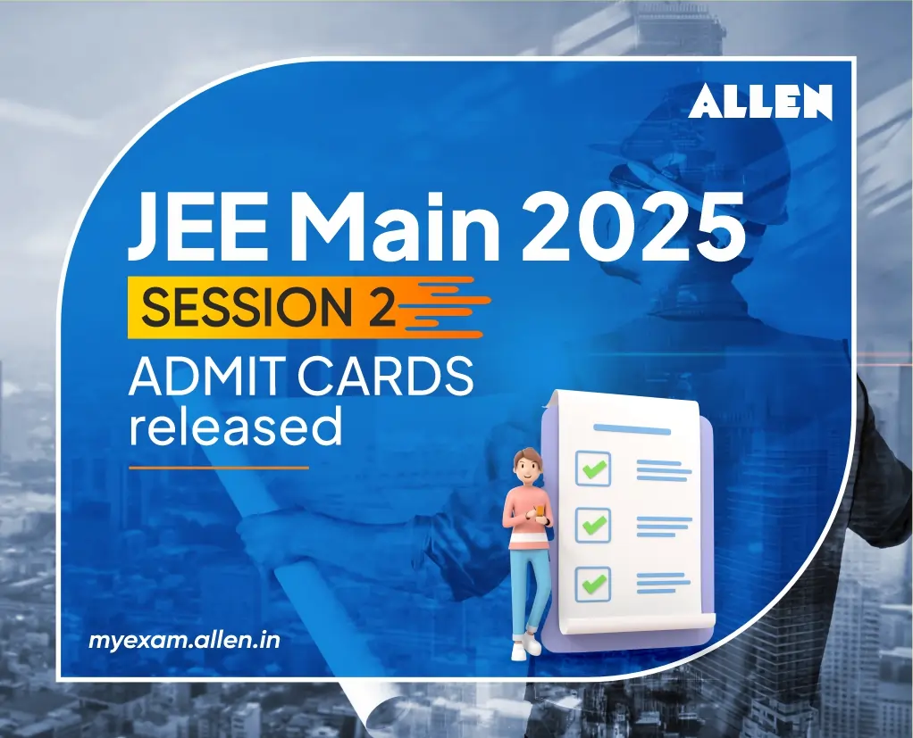 The candidates of JEE Main 2025 Session 2 Paper 1 can download their admit cards from the website of JEE Main, jeemain.nta.nic.in. The admit cards for JEE Main 2025 Session 1 Exam have been released 3 days prior to the examination date. The JEE Main 2025 Session 2 examination will be conducted at different examination centres in several cities of the country and 15 cities outside India.