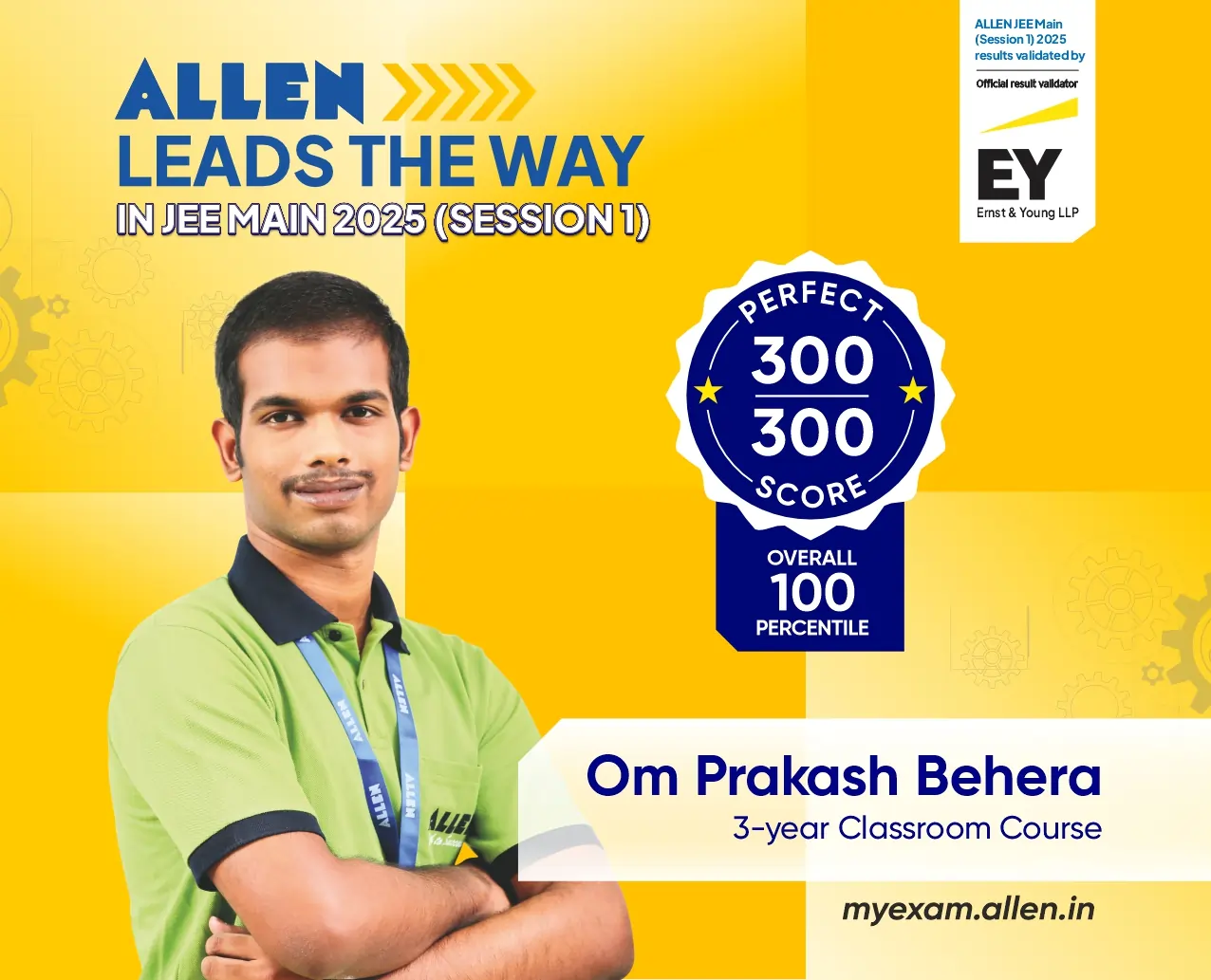 Om Prakash Behera of ALLEN Career Institute is among the 14 students in the country who have scored 100 NTA score in the JEE Main 2025 Session 1 Results announced on Tuesday, 11 February 2025.