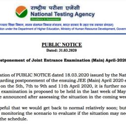Initially, the NEET UG 2020 exam was scheduled for 3 May while the JEE Main 2020 April attempt exam was scheduled to be held on 5 to 11 April 2020. However, both the examinations were postponed due to the coronavirus outbreak.