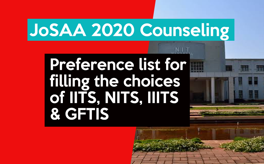 *For students help We have prepared preference list for filling the choices of IITS,NITS,IIITS & GFTIS in joint seat allocation counselling conducted by JOSAA. This preference order is only as per Our suggestion to you. You should change your colleges preference order according to your priority and interest in colleges and branches, after that you must fill your colleges in JOSAA counselling*.
