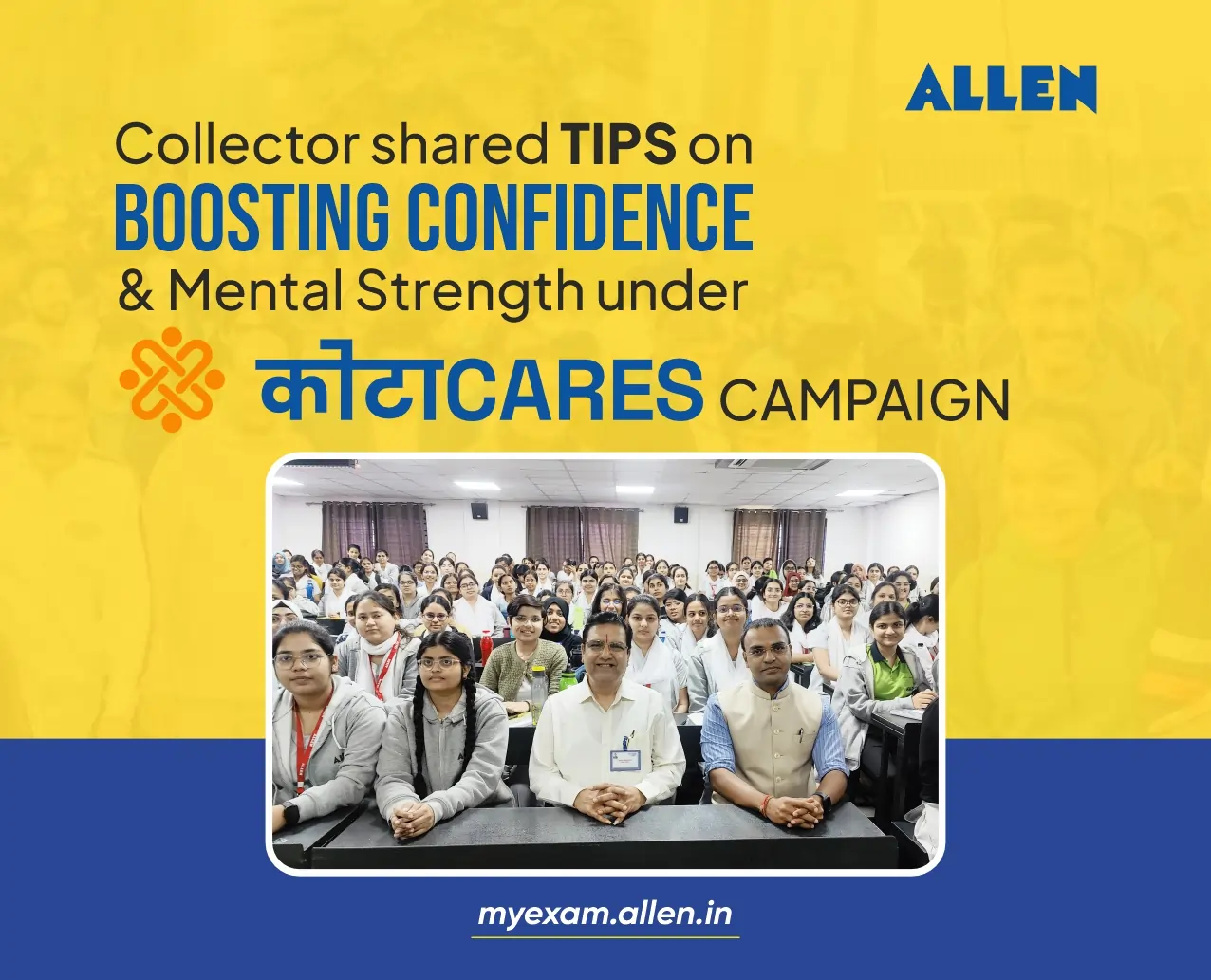 Under the “Kamyaab Kota” and “Kota Cares” campaign of the district administration, coaching students are being constantly motivated. In this episode, District Collector Dr. Ravindra Goswami reached the Satyarth Campus of ALLEN Coaching Institute in Jawahar Nagar on Tuesday, 18 February and interacted with the students preparing for the NEET exam.