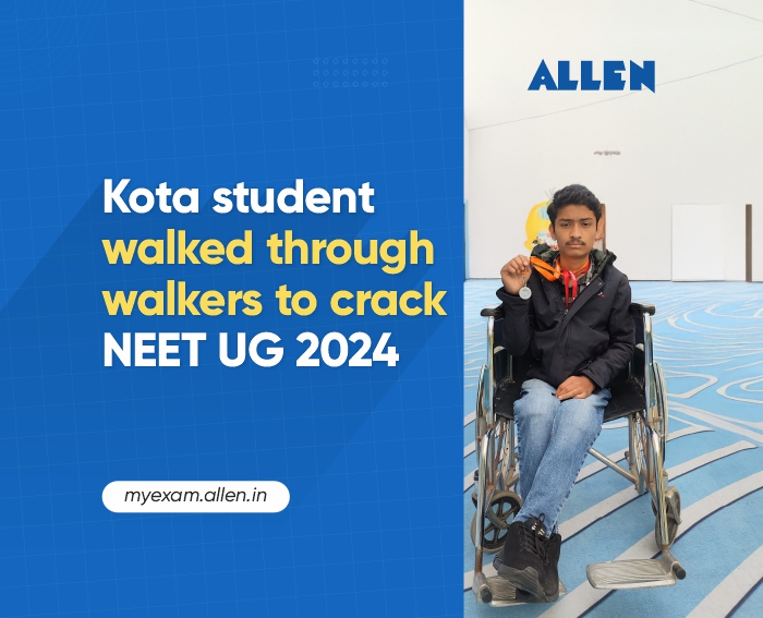 Due to 75% physical disability since childhood following a surgery side-effect, he has developed weakness in his lower legs and cannot walk on his own. However, he did not give up and used walkers to attend offline classes in preparation of NEET UG at ALLEN Career Institute of Kota.