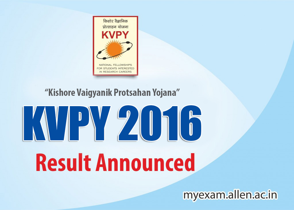 The following students are short listed for the KVPY-2016 interviews subject to verification of details of the candidates. The interviews are likely to be held during January 15, 2017 – February 15, 2017. However, the students will be informed about their interview dates, time and venue shortly by email / KVPY website.
