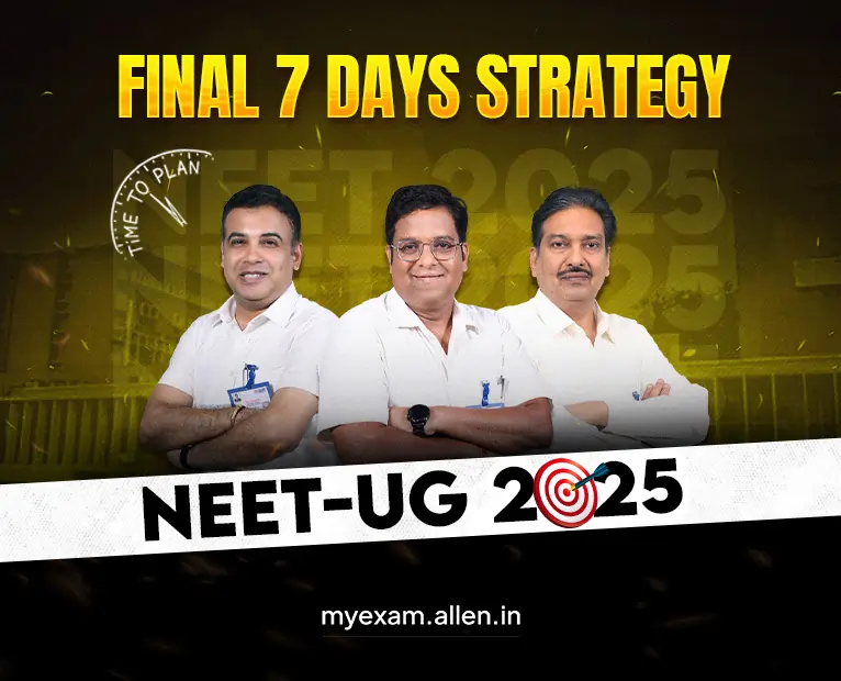 Here are Senior and experienced ALLEN Expert faculty members, Neeraj Jain Sir, Vineet Gangwal Sir and Dr Gaurav Maheshwari (over 20 years of mentorship experience) who are elaborating on the last 7-days strategy to crack NEET UG 2025.