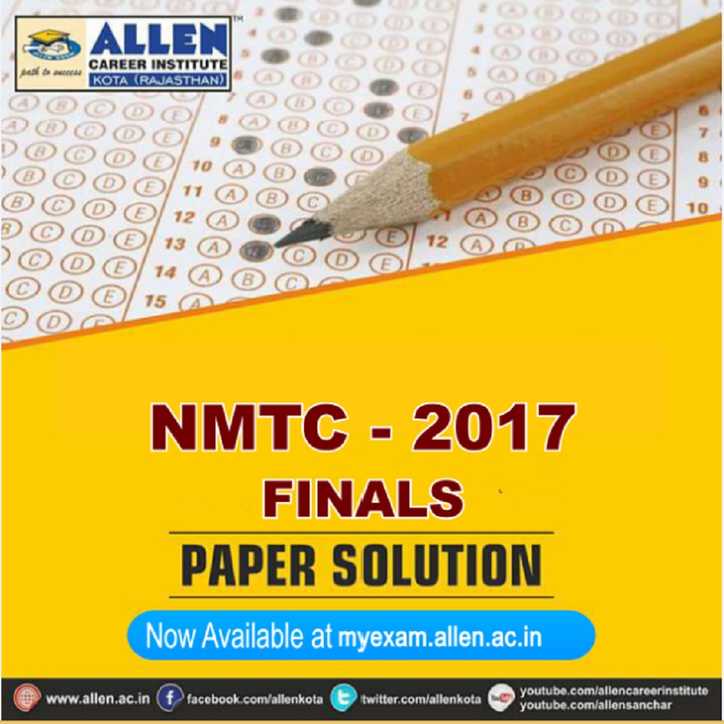 National Mathematics Talent Contests (NMTC) Exam 2017 Paper Solutions Prepared by ALLEN Career Institute’s experienced faculty members now available here.