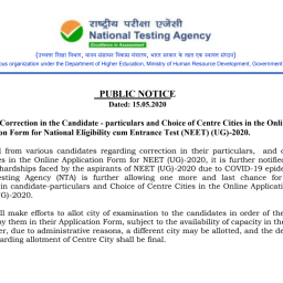 National Testing Agency (NTA) has postponed the NEET UG 2020 exam due to outbreak of COVID-19. NEET (UG) examination was scheduled to be held on 3, May 2020. As per the official notification released by National Testing Agency “As of now the examination is proposed to be held in the last week of May 2020. The exact date will be announced later on after assessing the situation.”