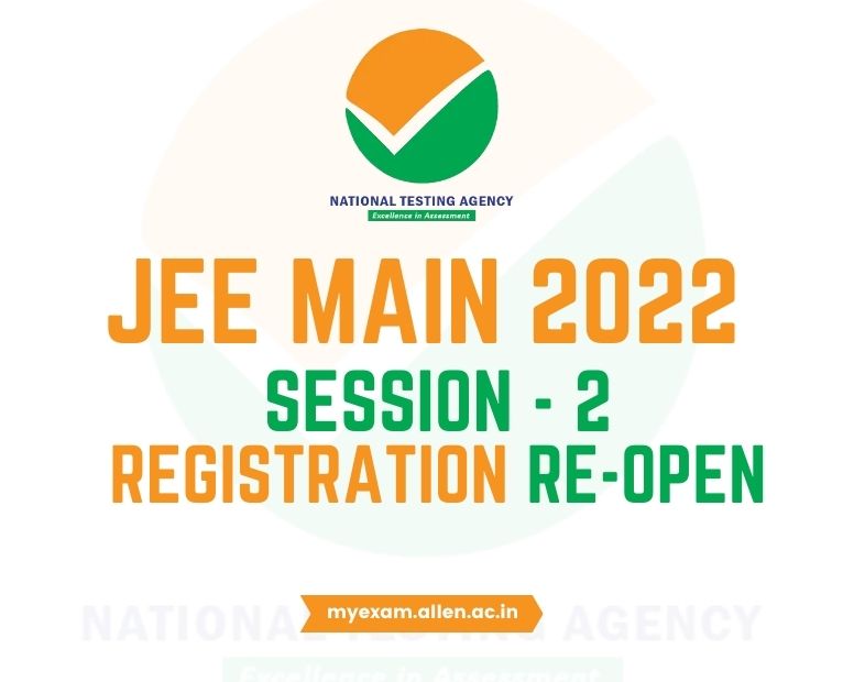 There is good news for the JEE Main 2022 Session II aspirants as NTA has reopened the Online registration window for JEE Main 2022 Session 2 (July 2022) once again to provide an opportunity to the remaining candidates for applying for JEE Main 2022 Session 2 examination who could not apply for JEE Main 2022 Session 2 due to various reasons.
