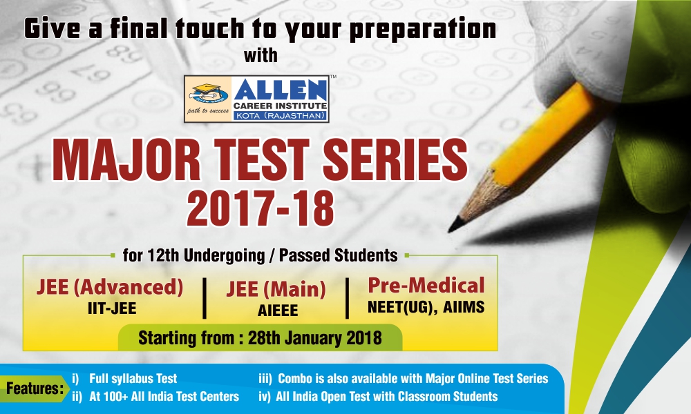 During this Corona period, students all across the country are preparing for the engineering and medical entrance exams sitting at home. In view of this, Major Test Series is being started under the Distance Learning Program of ALLEN Career Institute. This series is to commence from December 27, 2020.