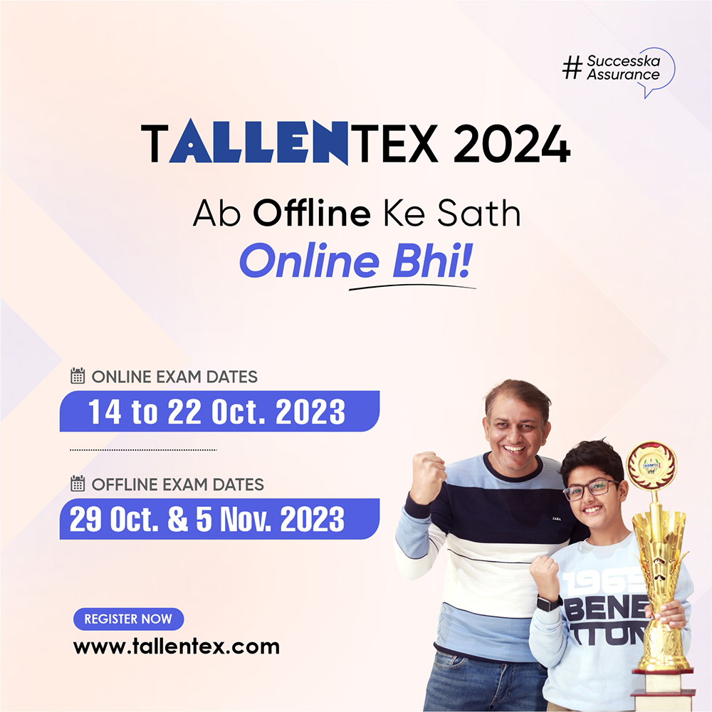 Registration in TALLENTEX can be done in both online and offline mode. Registration on TALLENTEX can be done by visiting the website www.tallentex.com. Forms can be filled at schools and nearest ALLEN centers for offline registration from the first week of June.