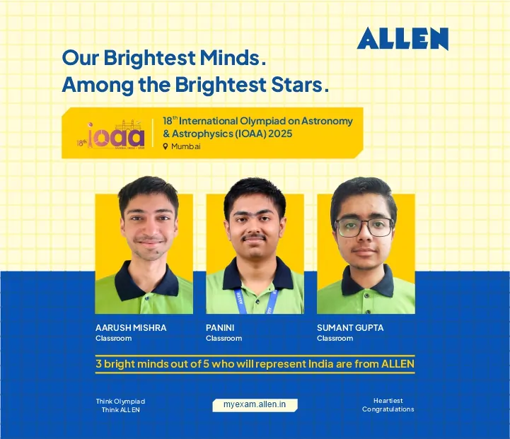 In which, on the basis of performance, top five students were selected for the 18th IOAA, out of which three students are from Allen. Students from different countries participate in IOAA at the international level. The main objective of IOAA is to increase the interest of students in space science and related subjects. This Olympiad is organized to promote astronomy and astrophysics among school students.