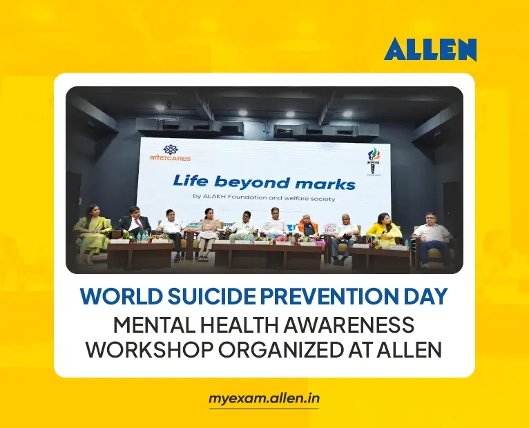 On the occasion of World Suicide Prevention Day today, a mental health awareness workshop was organized at ALLEN Supth, Naya nohra. The theme for this year 2025 was set as “Change in perception towards suicide” and the call for action was “Start a conversation”. The program was chaired by District Collector, Kota, Peeyush Samariya.